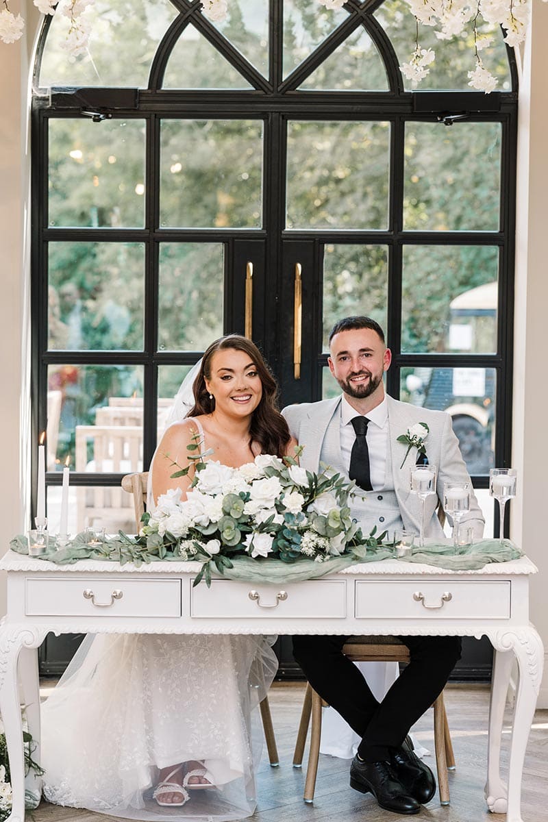 The wedding ceremony took place in the Orangery at Woodlands Hotel, a breathtaking space with a glass roof and floor-to-ceiling windows. This allowed natural light to flood the room, creating a bright and open ambiance that was perfect for capturing the bride and grooms wedding vows and the smiles of their family and friends. The high ceilings and airy feel of the stunning Yorkshire wedding venue allowed for vivid, beautiful wedding photographs, capturing the love and joy in the room.